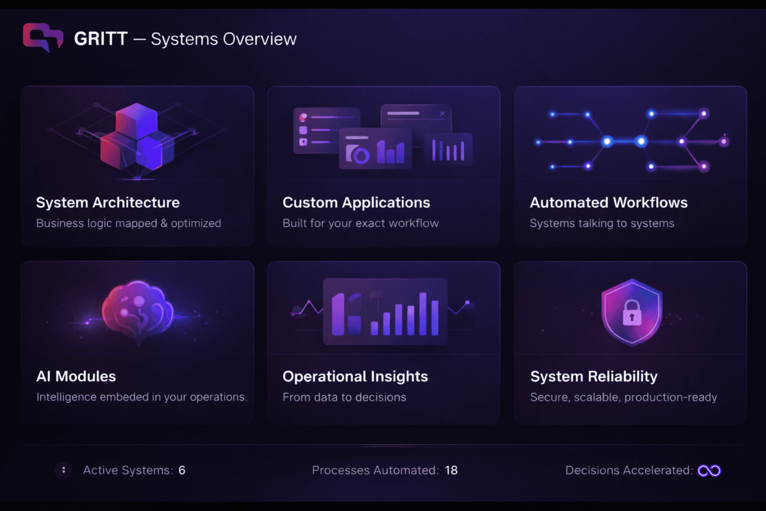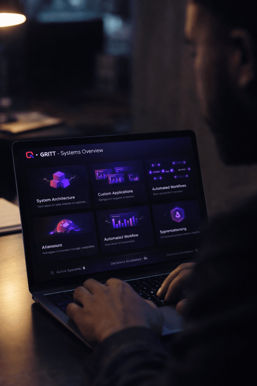 Gritt es un estudio de desarrollo de software que construye sistemas digitales a la medida. Diseñamos soluciones que conectan procesos, datos y equipos para que las empresas operen mejor y escalen con claridad.